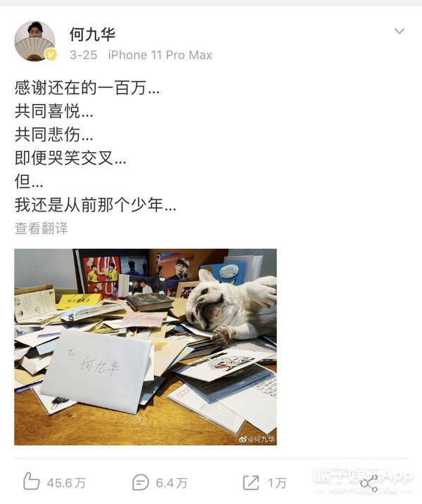 差不多同一时期,好友何九华也发了微博,庆祝自己粉丝过百万。