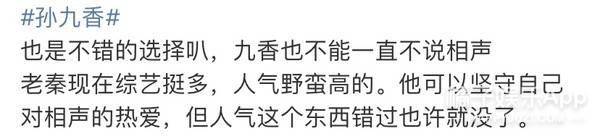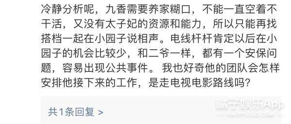 还有冷静分析的,九香不可能走流量路线,也还有家要养,要再找搭档在小园子说相声;