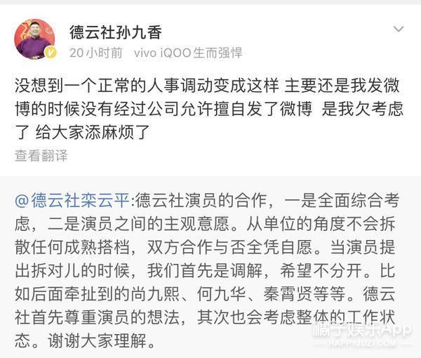 而孙九香上热搜,就是因为发了条确定和秦霄贤不再搭档的微博。