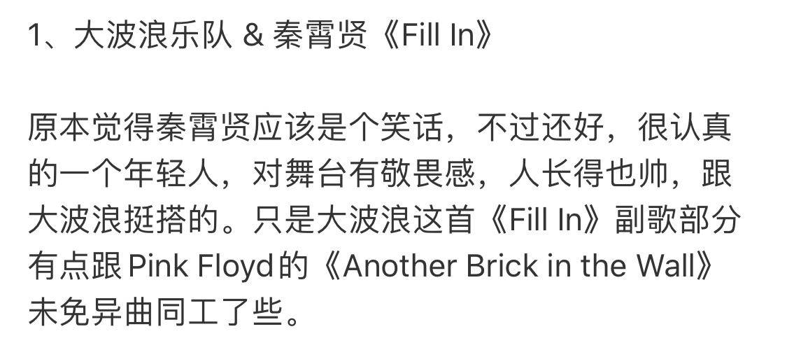 对秦霄贤的表现,丁太昇评论道:原本觉得秦霄贤应该是个笑话,不过还好,很认真的一个年轻人,对舞台的敬畏,人长得也帅,跟大波浪(乐队的名称)挺搭的。