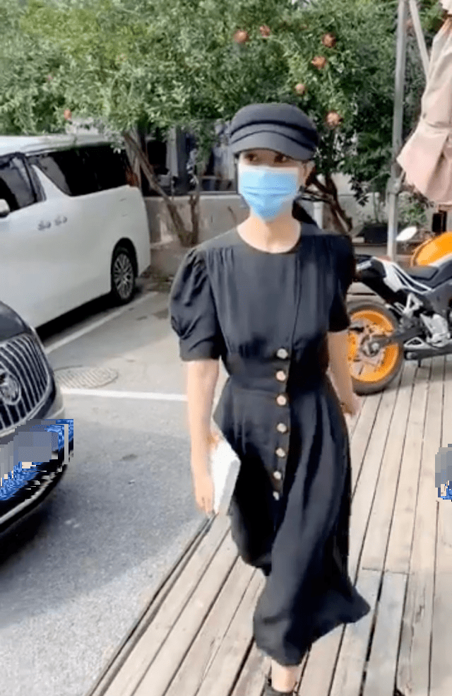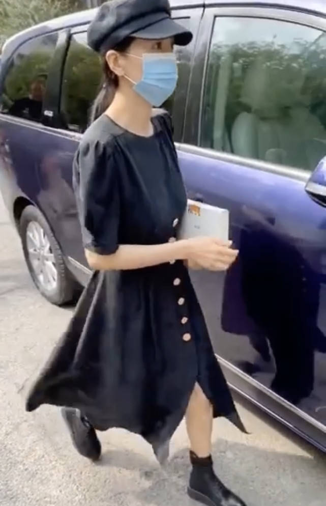 她戴着口罩,手里拿着一本书,从保姆车上下来,身上连包包都没背,一副朗读完就要马上回家带女儿的模样。