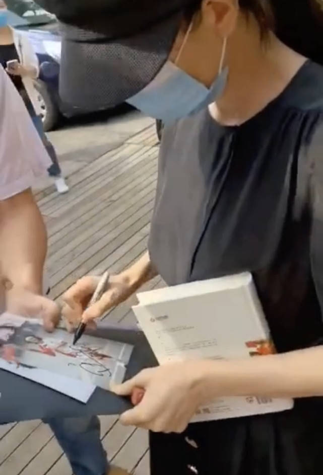 有粉丝拿着照片希望高圆圆签名,她看了一眼就停下脚步,签完才走进剧场。