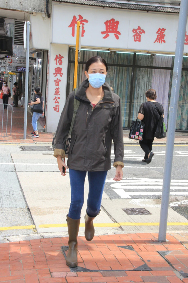 当天,炎炎夏日30多度高温,吴绮莉穿着厚厚的防水外套,搭配一双高筒雨靴,明明没有下雨,但她就像在雨中行走一样,惹来身边路人异样目光。