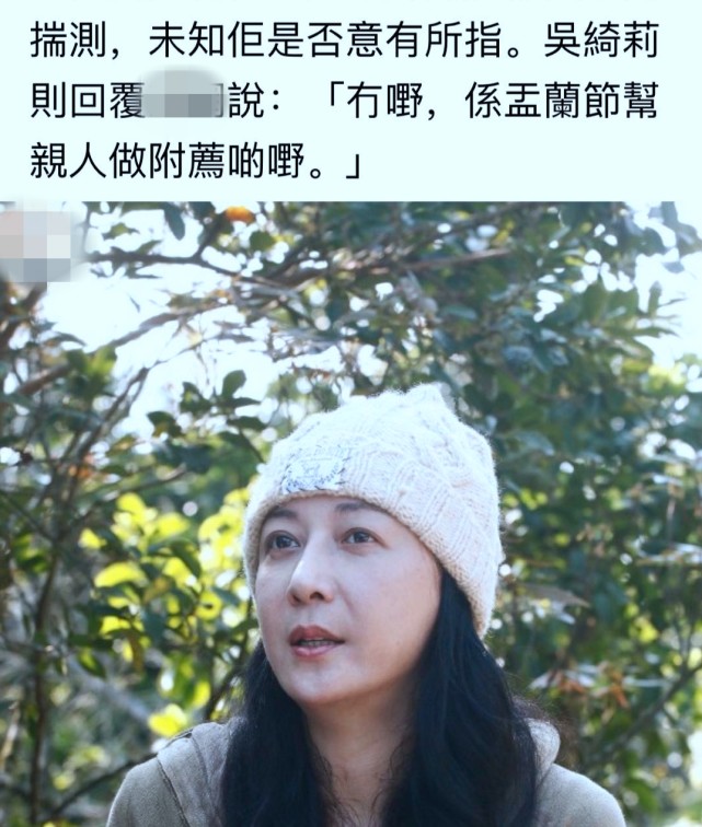 港媒联络吴绮莉,希望她能够解释发帖原因,她也没有多说,只回复“没事,我帮亲人做附荐的事情”。