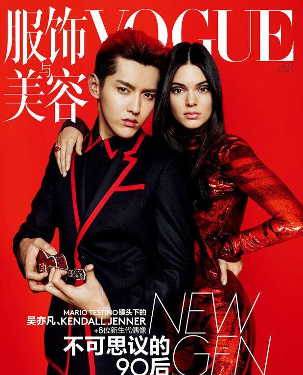 当年7月刊的杂志封面人物,是吴亦凡和Kendall。2015年,吴亦凡还是炙手可热的顶级流量,刚归国一年,就已经成了电影圈的宠儿,跟徐静蕾、冯小刚演电影。