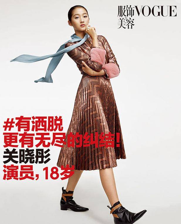 当年才18岁的关晓彤也有出现在《VOGUE》杂志的内页。当时关晓彤还是“国民闺女”,演戏大多是配角,给人的印象是童星。