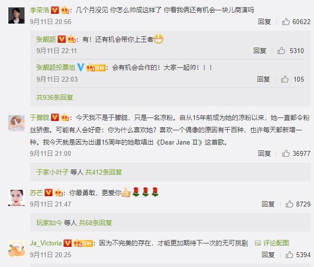 与此同时,韩红、李荣浩等人都留言为其加油鼓劲。