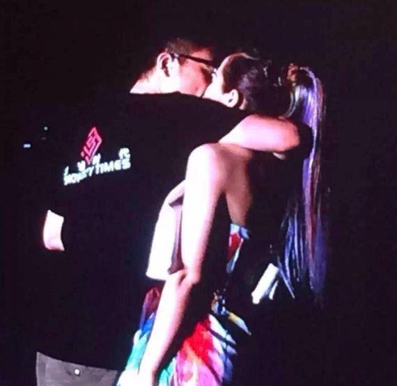 随后,一位身穿黑色短T戴着眼镜的人响应张靓颖的告白,上台拥吻张靓颖,两人就此公开恋情。男方为其经纪公司CEO冯柯。