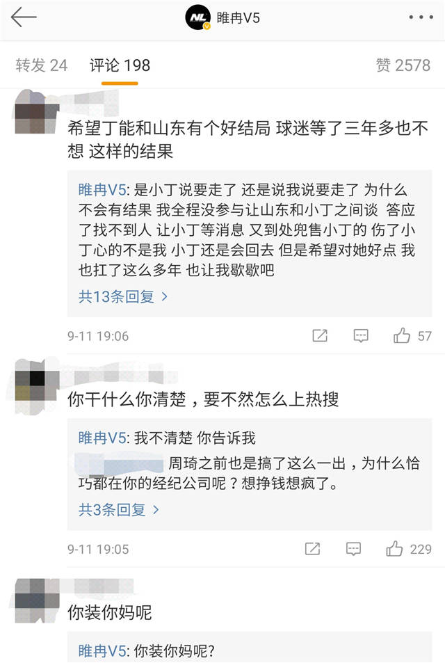自易建联赴美进行康复治疗后,国内篮坛最大焦点便是丁彦雨航与山东队的恩怨了。而随着西王发文驳斥小丁胡说,后者的经纪人睢冉也很快登上了热搜,面对外界争议,睢冉更是忍不住和网友对骂!