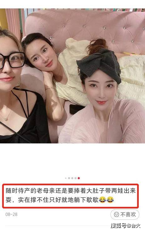 就连进入待产期,杜星霖还要带着两个孩子出去玩,累了就找个椅子躺一会。