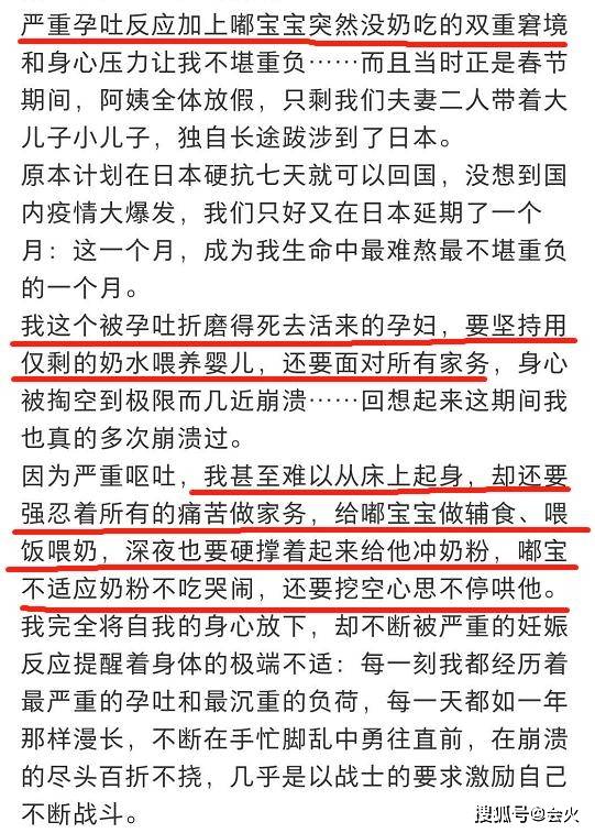 杜星霖也在社交平台上记录了处在哺乳期和孕期的双重困难,她提到被孕吐折磨的死去活来之时还要用母乳喂养小儿子,而同时她还要负责所有的家务,半夜起床给小儿子冲奶粉、哄小儿子睡觉。