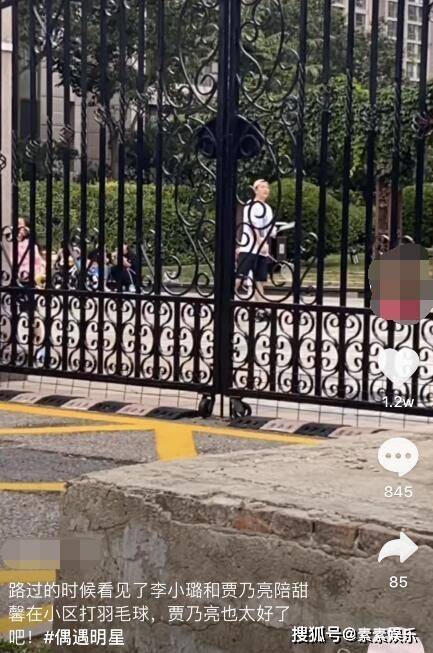 贾乃亮李小璐陪甜馨打球,网友们拍摄到了之后留言:路过的时候看见了李小璐和贾乃亮陪甜馨在小区打羽毛球,贾乃亮也太好了吧!