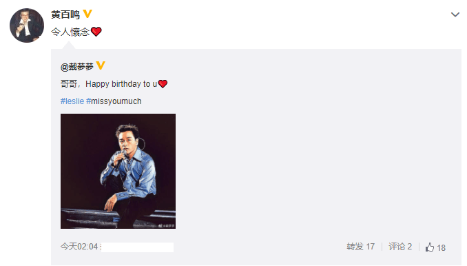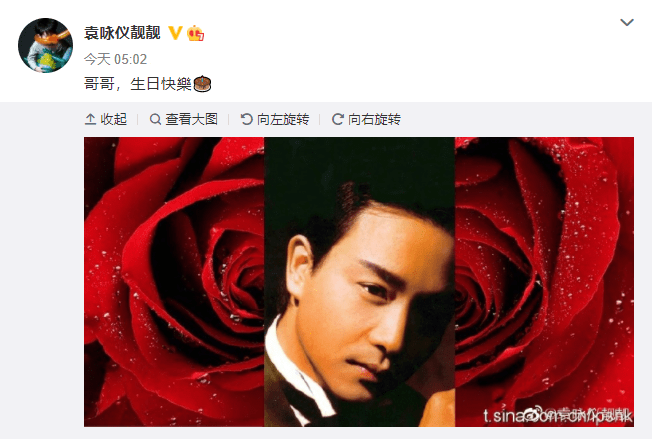 9月12日晨五点,袁咏仪按时发表动态,晒出张国荣的帅照一张并附文:"哥哥,生日快乐"。