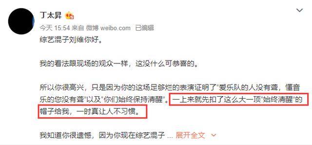 9月11日下午,刘维对丁太昇的评价进行回应,上来就是一句自我介绍:我是综艺混子刘维。