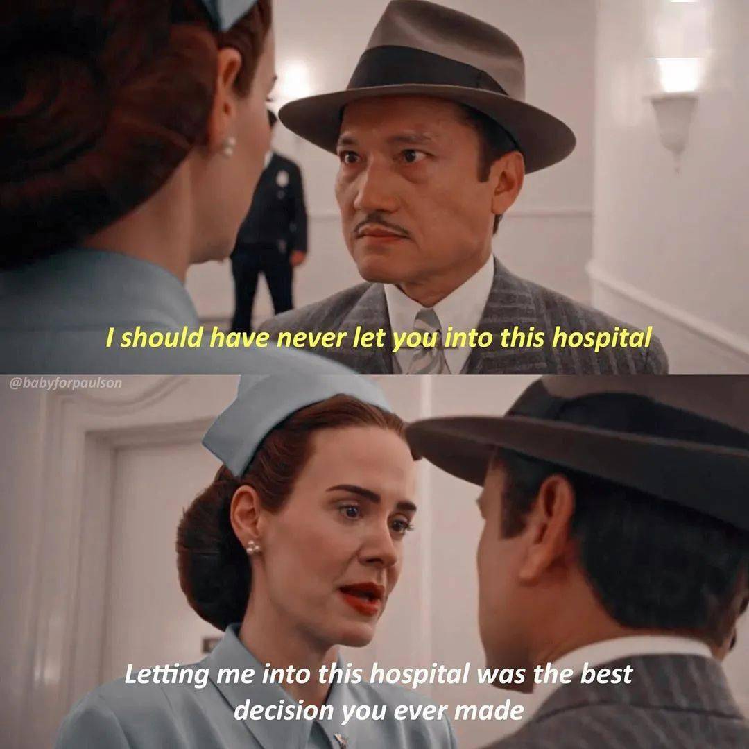 《拉契特:黯衣天使》同样是恐怖题材,同样由美恐的总导演Ryan Murphy执导,美恐的女主Sarah Paulson 担任剧集大女主,剧情设置在上个世纪的四十年代,而Sarah Paulson 饰演一名在疯人院工作的护士,几乎可以看作是平行世界里的Lana Wintour再次进入了疯人院。