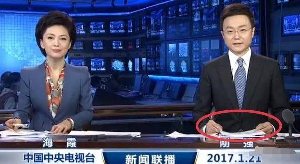和潘涛一样,刚强第一次播《新闻联播》的时候也很紧张,点头、咽口水的动作明显,但他比潘涛略好的一点是,刚强的手部动作是放松的,和坐在旁边的海霞保持一致。