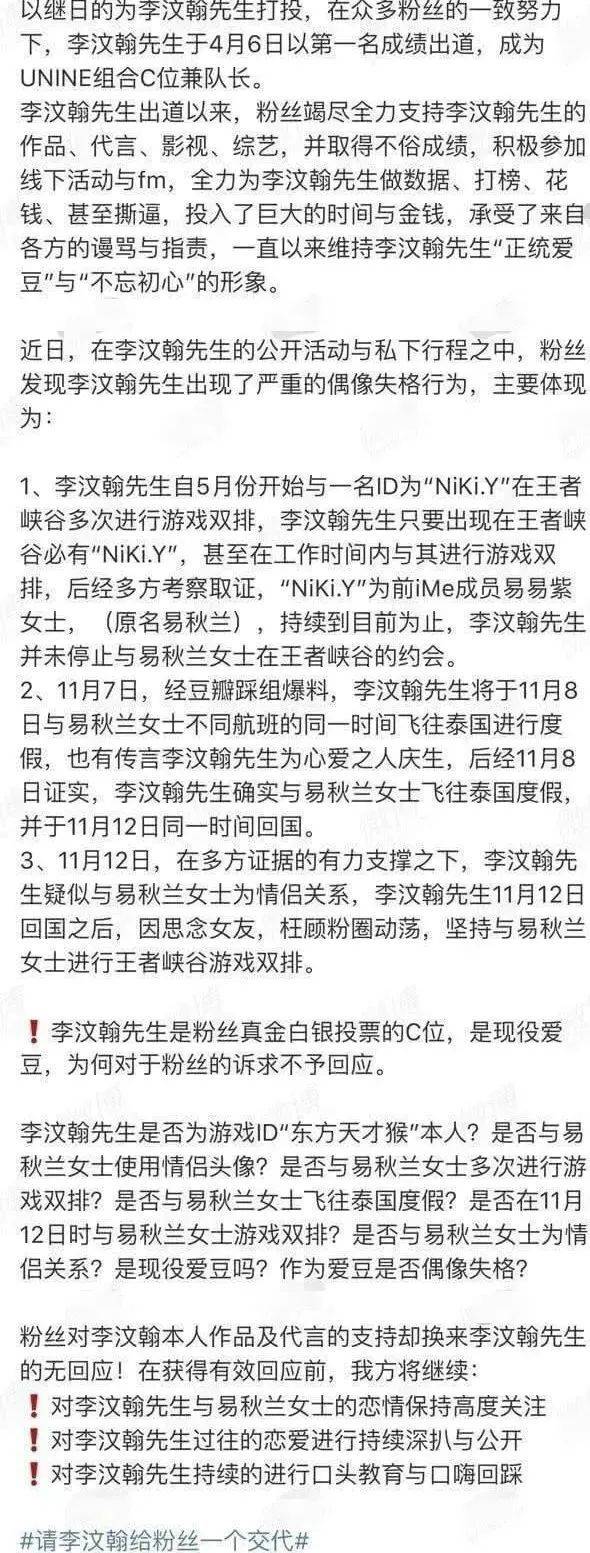 但没有办法,官方给出的答案就是单身,不管恋情是否属实,就连粉丝后援会对恋情的指控李汶翰也没有正面回应。