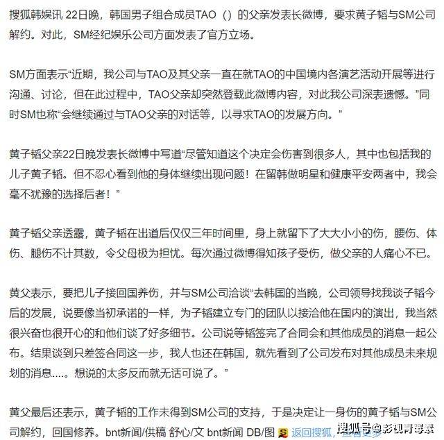 黄子韬52岁的父亲去世,曾帮助黄子韬退出EXO,与SM打