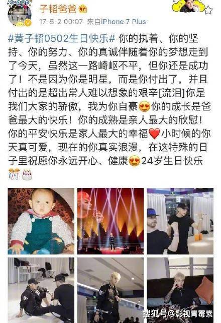 在黄忠东的微博搜索这个话题,能看到每年黄忠东都给黄子韬写小作文祝其生日快乐,字里行间全部都是来自父亲的爱与寄托,令人动容。黄忠东之前是一个很成功的生意人,为了黄子韬放弃自己的事业,全身心帮助黄子韬在娱乐圈打拼,值得敬佩。