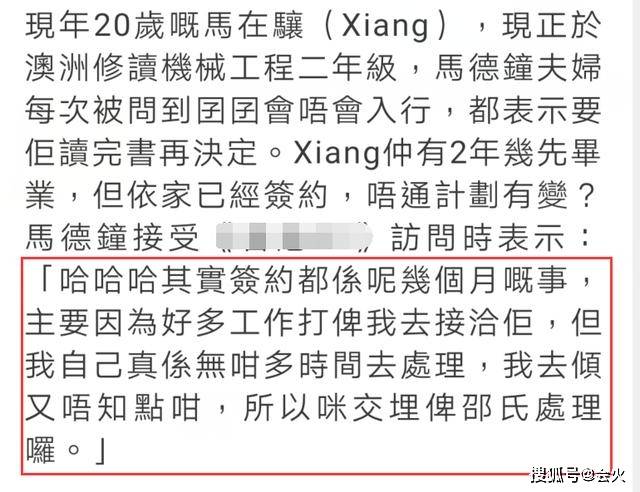 之所以很多媒体都将视线聚焦于此,是因为早在一年前,就已传出马在骧可能进军娱乐圈的消息。2019年,港媒爆料马在骧已签约邵氏,父子二人签约进同一家公司。但同时也有传言称,马在骧签的只是短期合约,一年后就将到期,而且并未接洽影视工作。