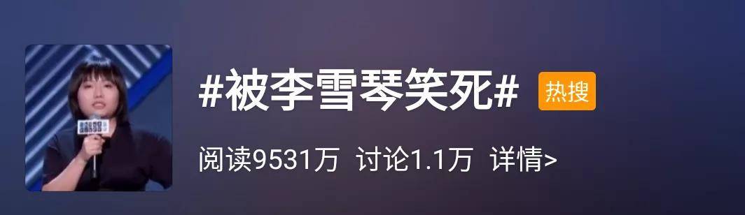最新一期节目中,李雪琴的表演笑翻全场,带着“被李雪琴笑死”的话题登上热搜。