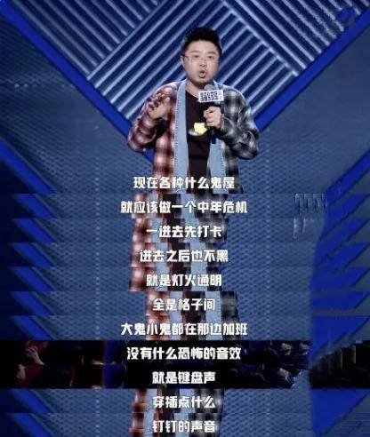 把中年危机和密室做对比,还吐槽生活远比鬼屋恐怖,不如做一个中年危机主题的密室,呼兰的这段表演全程高能,代入感极强。