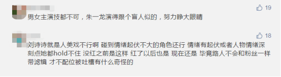 至于演员演技的问题,这几天也有很多人在说。刘诗诗演技太尴尬,不适合这种有些活泼的角色,还说朱一龙的眼睛里看不到神韵,让人看着比较无感,压抑。