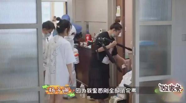 大家都知道,既然是真人秀,肯定会有不少摄像机,节目组的工作人员到她家安装这些设备,或许是提前做了功课,知道杨子珊很爱干净,所以他们都穿了防护服。