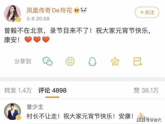 玲花发文替曾毅解释道他因特殊时期还被困在家中隔离,无法参与节目录制,曾毅则在这条动态下打趣道,村长不让自己走,相当幽默。