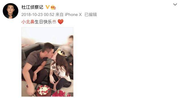 这画面让人不禁想到2018年杜江为霍思燕庆生的动态,他晒出两人接吻的照片,还甜喊“小北鼻生日快乐”。