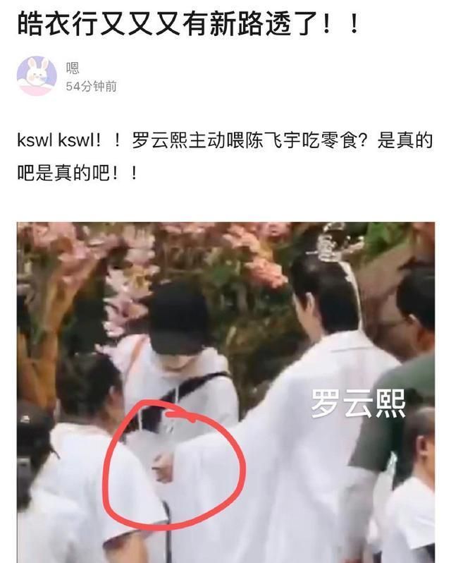 罗云熙想要勾一勾陈飞宇的腰带,似乎察觉到不妥马上又抓起了袖子,旁若无人的亲密模样令粉丝很是激动开心。