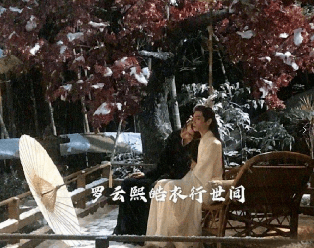 一身黑衣的陈飞宇靠在白衣似雪的罗云熙的肩头,一白一黑在这红色花树下定格,再加点BGM和特效想必又是一个出圈名场面。