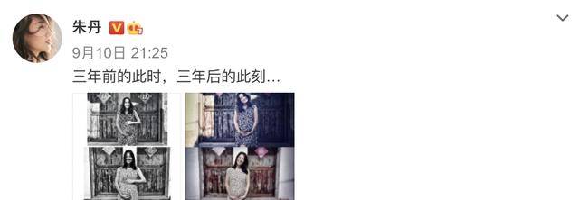 9月11日,朱丹分享了三年前后的对比照,并附文:三年前的此时,三年后的此刻。