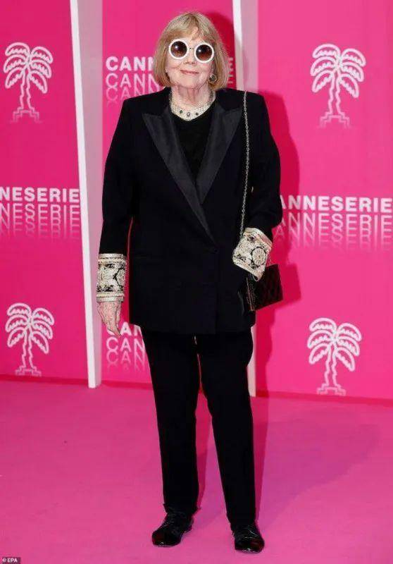 拥有演技优势的戴安娜,在时尚方面也很出众,她在多部电影中的服装都是自己设计的,即便是年过八旬时参加电影节,依然可以成为红毯最潮的那一位,黑色天鹅绒镶边西装,穿身上真是格外霸气。
