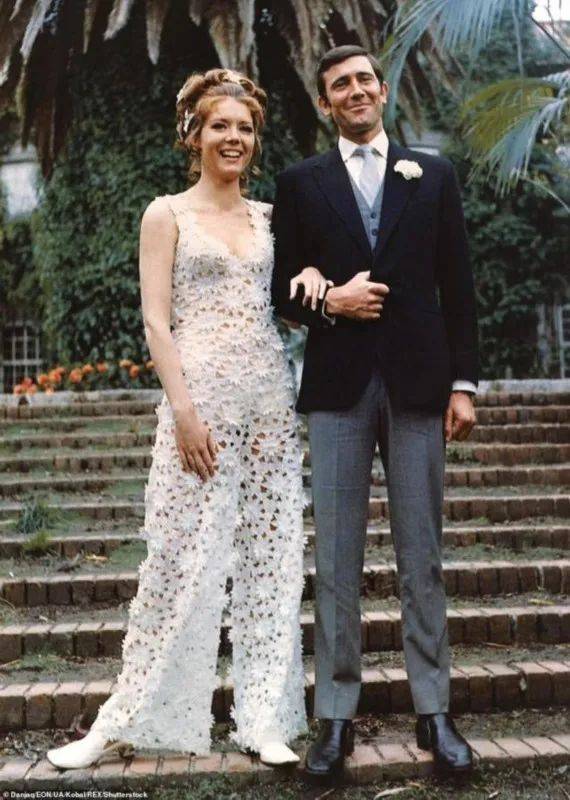 而除了美丽大方之外,戴安娜所饰演的邦女郎成为经典的另一个原因,在于她是詹姆斯·邦德的首位妻子,而在剧中的婚礼上,戴安娜选择的是纯白色的连体裤,并非是传统的婚纱长裙,这个在当时看来真是非常别具一格的。