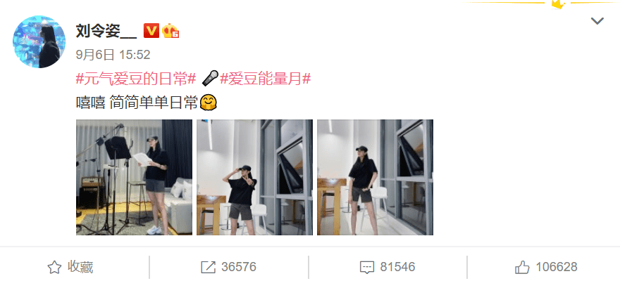 刘令姿真爱粉很多,随便发条微博都要10万+的点赞: