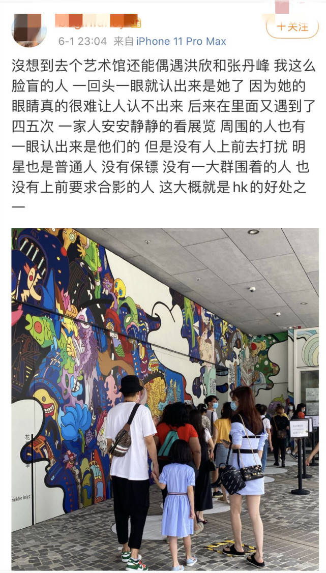 同样是在6月,也有路人在艺术馆偶遇了洪欣和张丹峰带着女儿一起看展览。