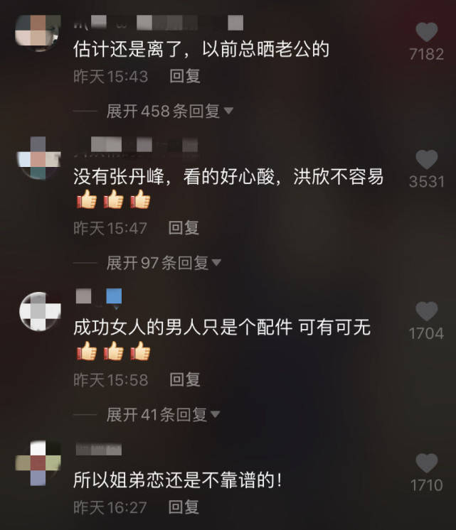 不少网友质疑以往洪欣很爱晒老公,现在只字不提,二人是否已经离婚?还有人感叹姐弟恋果然不靠谱。