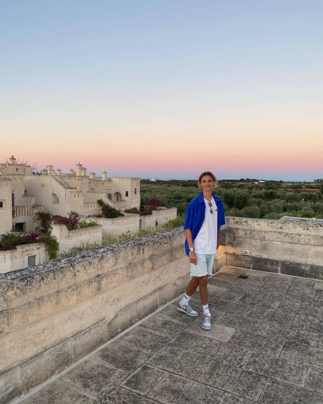 外国的父母们也是真的很开明,罗密欧和女朋友的小小年纪,说起来也算是早恋了,然而贝克汉姆和维多利亚依旧非常支持,所以小情侣两个人平时很频繁的秀恩爱,看得出来罗密欧很爱自己的女朋友,作为贝克汉姆最帅的儿子,罗密欧平时也很会穿,宝蓝色的短袖衬衫搭配浅蓝色的牛仔短裤,中分造型的金色短发,有自己的品味。
