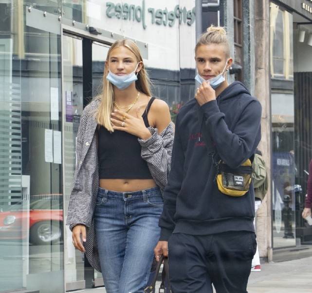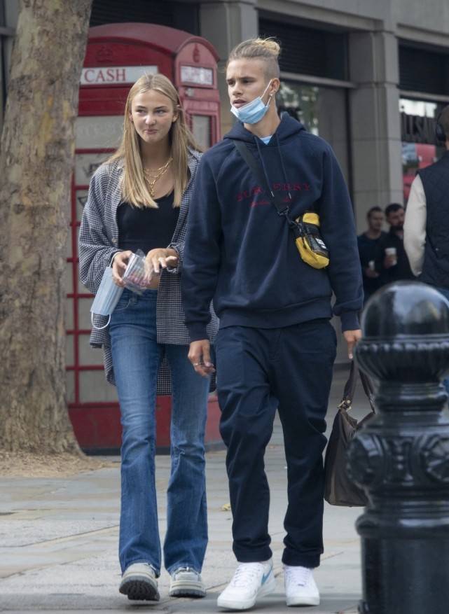 罗密欧应该也是贝克汉姆三个儿子中身材最好的一位了,个子比哥哥布鲁克林要高很多,两个人出街的画面很养眼,罗密欧的女朋友虽然颜值普通,但是身材却相当的好,和罗密欧一样拥有一双大长腿,两个人走在一起很般配,mia的大手大脚,看起来似乎还会再继续发育,照片中的mia穿的街头又时髦,上半身一件纯黑色的短款抹胸背心,露出细腰,显得腿更加修长。