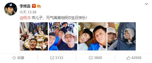 9月9日,李维嘉在个人社交平台晒出几张照片为杨洋庆祝其29岁的生日,并配文:"乖儿子,元气满满地祝你生日快乐!"。