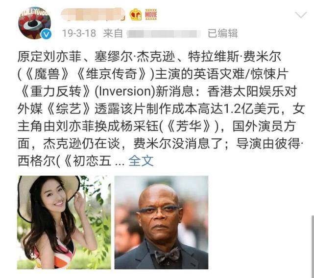 9月9日,有网友爆料刘亦菲之所以可以在全球海选中打败上千人入选,并不是因为她脱颖而出的实力和气质,是因为她的干爹陈金飞在背后默默铺路。据悉,刘亦菲早在2016年也确认出演中美合拍片《重力反转》,因为《花木兰》的项目一直搁置,所以2019年《重力反转》才官宣刘亦菲的角色由陈金飞女朋友杨采钰出演。