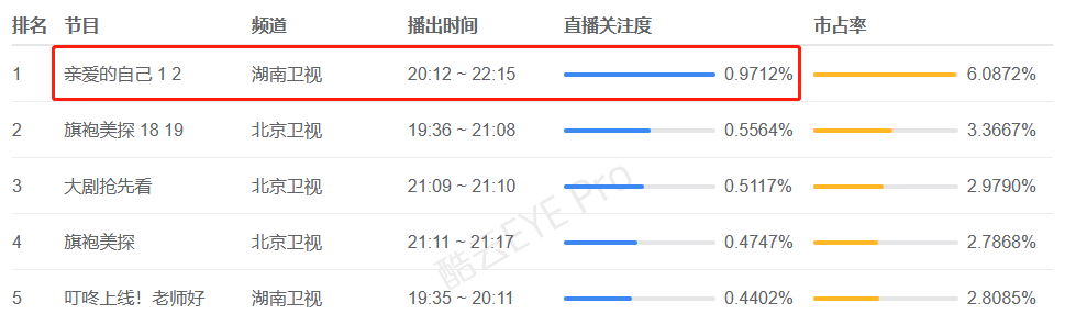 《亲爱的自己》收视下滑,首播当天在接档《以家人之名》的前提下还能勉强维持0.9,没想到到了播出的第二天就迅速下降到了0.7