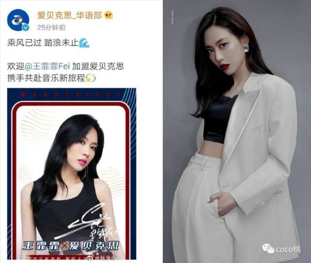 昨天爱贝克思(艾回)也正式官宣王霏霏的加盟,将和她携手共赴音乐新旅程。