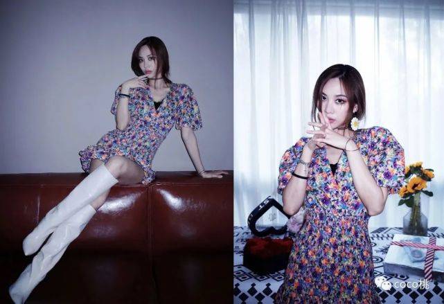 这套zara的碎花小裙子+白色长靴的look,轻易就可以效仿。
