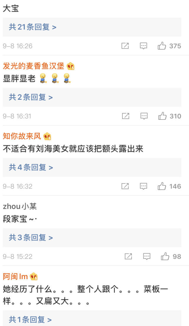 其实很多女艺人的刘海造型都不太好看,就像大家说的那样,美女还是应该把额头露出来才好看,空气刘海不仅很显脸型而且缺少了时尚感。希望关晓彤听了大家的评价后能够对自己的颜值有一个新的认知吧。