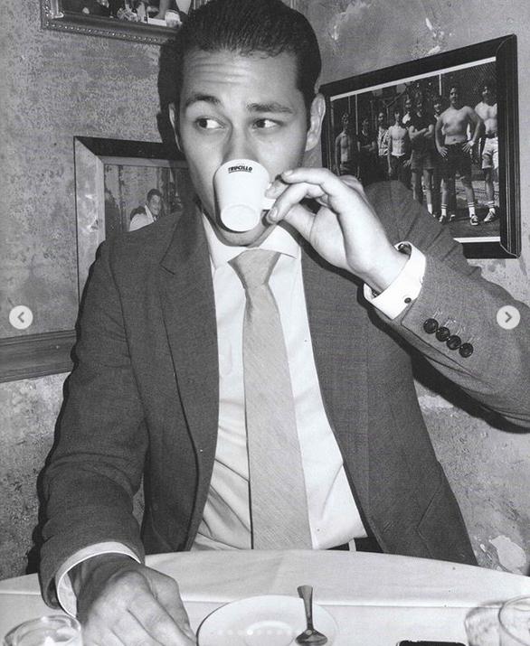 埃米利奥梳着意式油头,穿着是典型的纽约风格,是典型的纽约客。