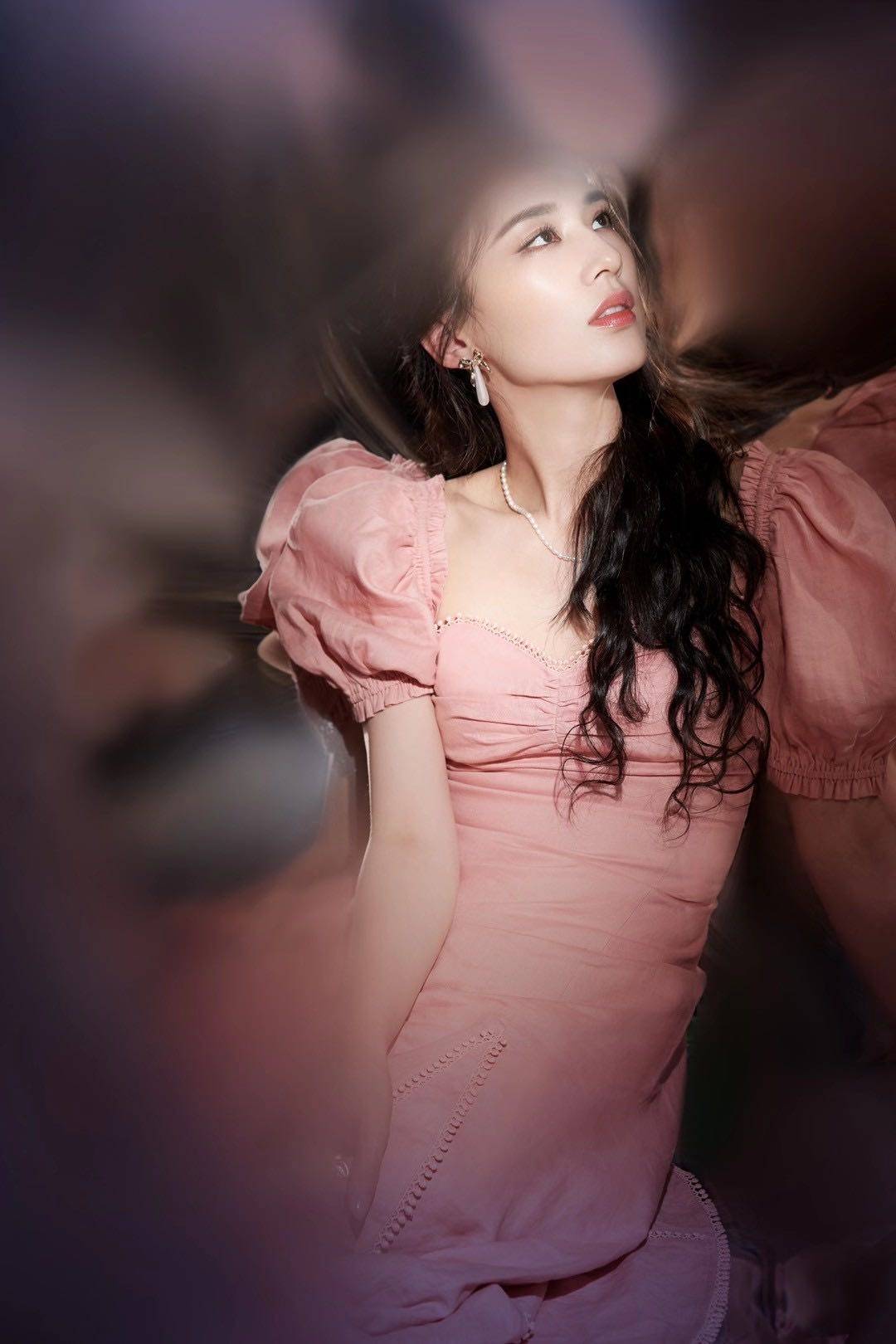 黄圣依身着粉色长裙 眼神自信迷