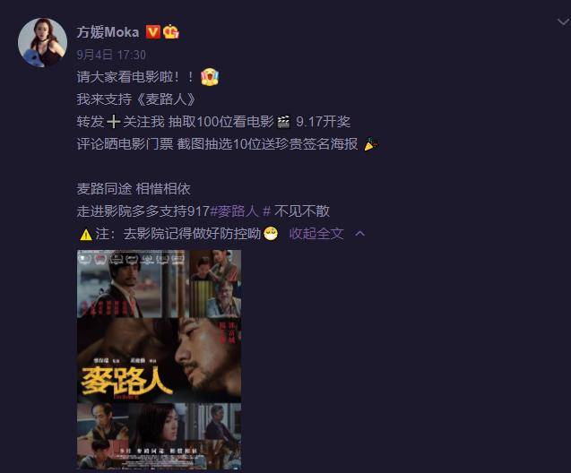 9月4日,方媛发表动态,支持丈夫郭富城的新电影《来路人》,抽取100位看电影,并送十份签名海报,并提醒大家做好防控。
