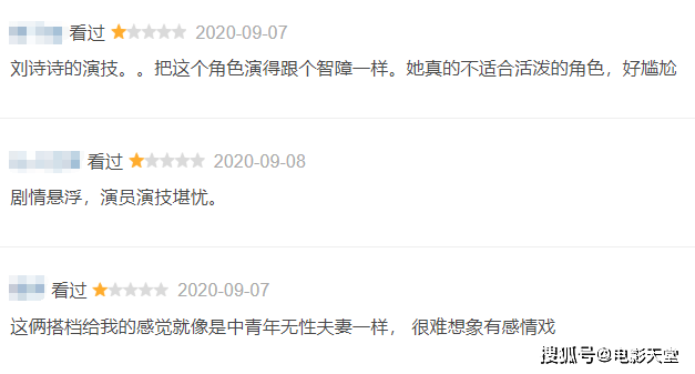 翻开目前的豆瓣评论,除了众多粉丝无脑刷出的五星好评,很多中差评的观众都对刘诗诗的演技提出了更高的要求。虽然目前该剧评分还没有出,但是可以预料这部剧最后的评分不会太高,有口碑扑街的趋势。